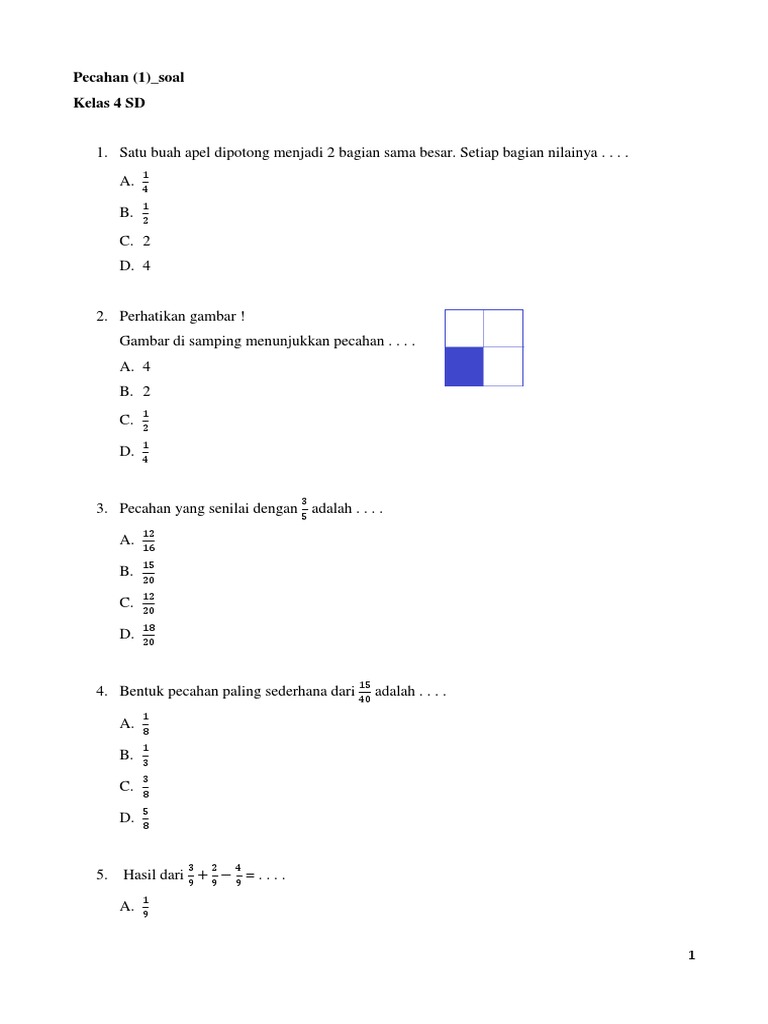Download Bank Soal Matematika Sd Kelas 4 Materi Pecahan Dan