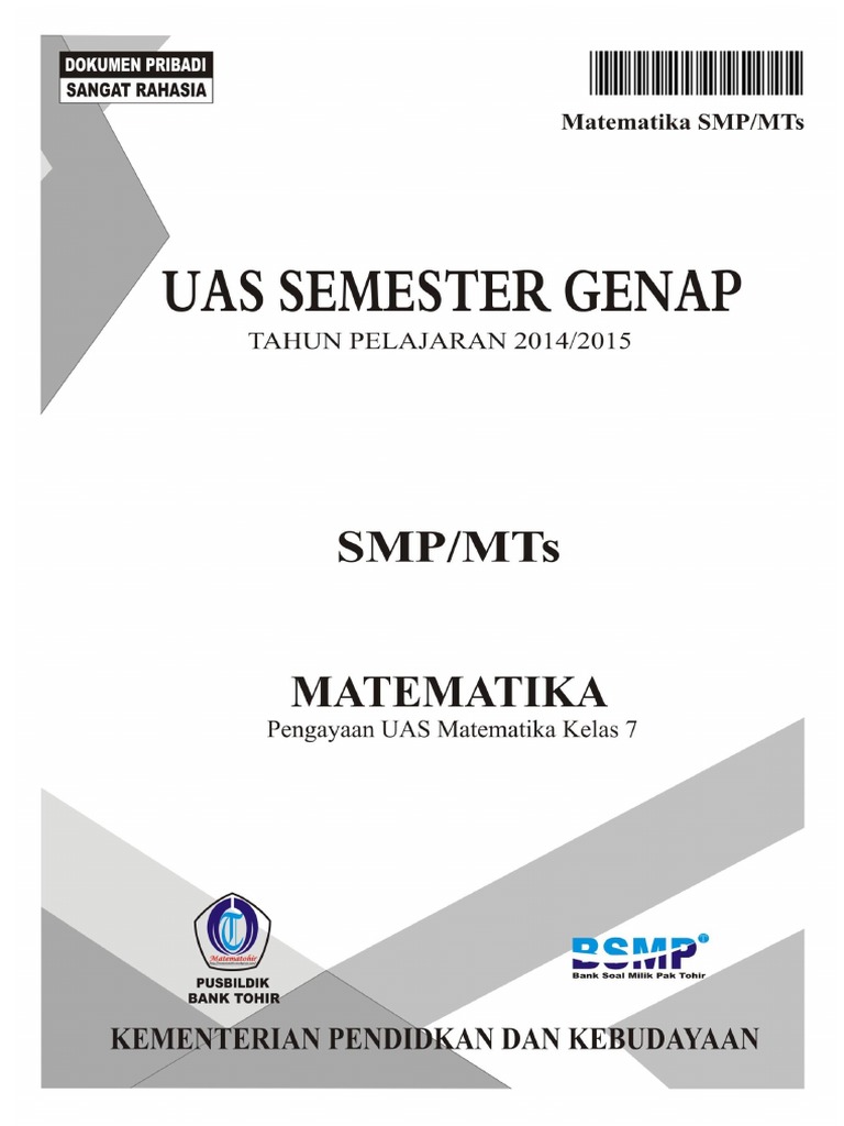 Soal Matematika Smp Kelas 7 Semester 1 2 Dan Kunci Jawaban