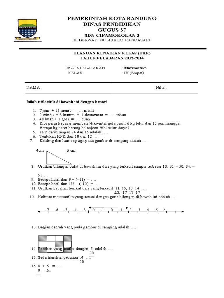 Soal Ukk Matematika Kelas 4as 1