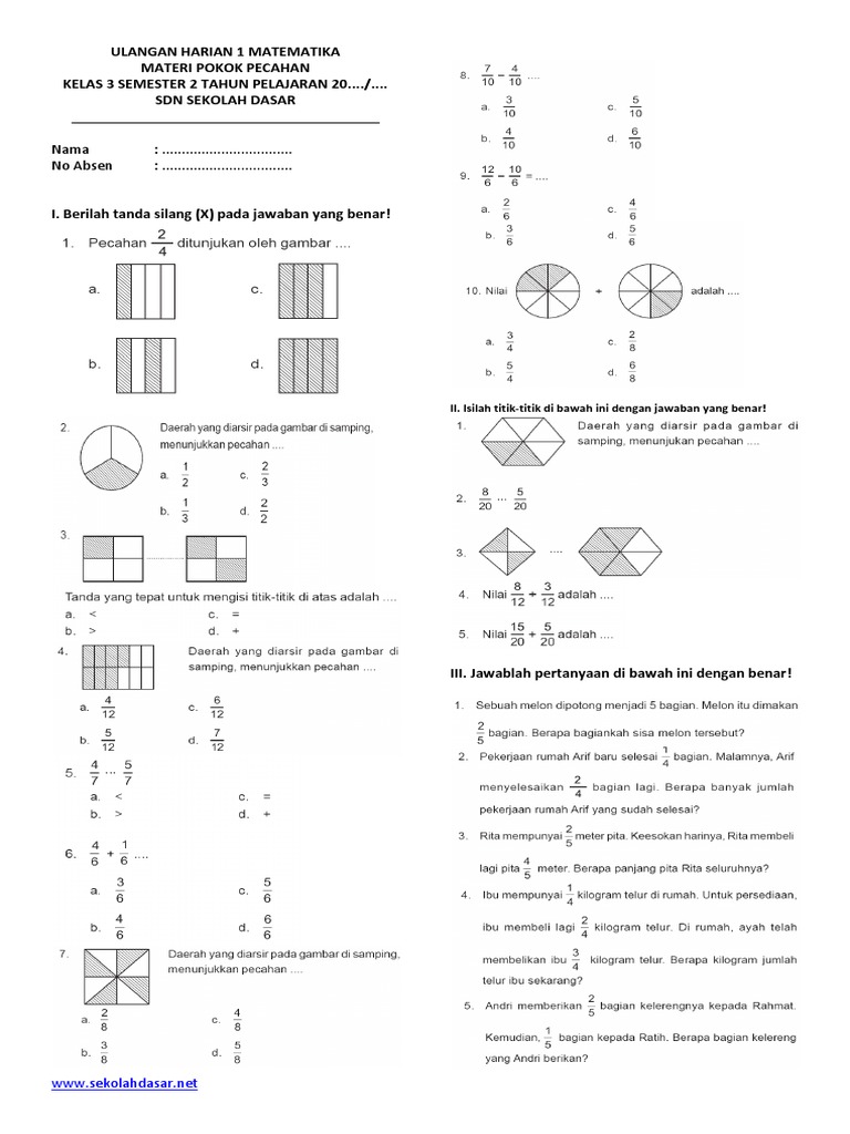 Soal Matematika Kelas 3 Semester 2 Pecahan Pdf