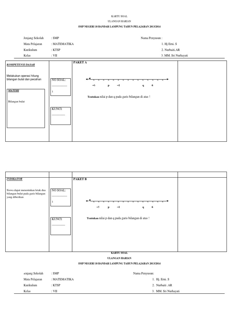 Format Kartu Soal Kelas Ix Semester 2 Andika