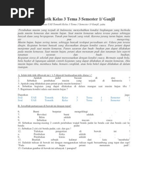 Soal Uas Tema 3 Untuk Kelas 3sd Semester Ganjil Plus Kunci