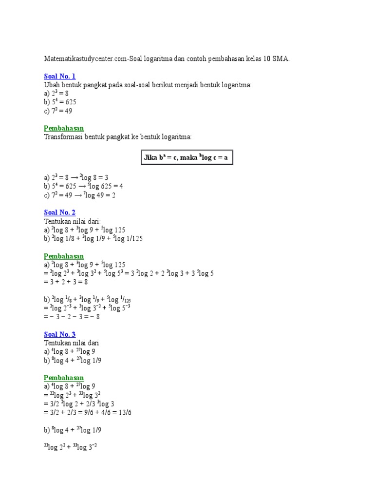 Soal Pembahasan Logaritma Pilihan Ganda Essay Blog Artikelkeren Com
