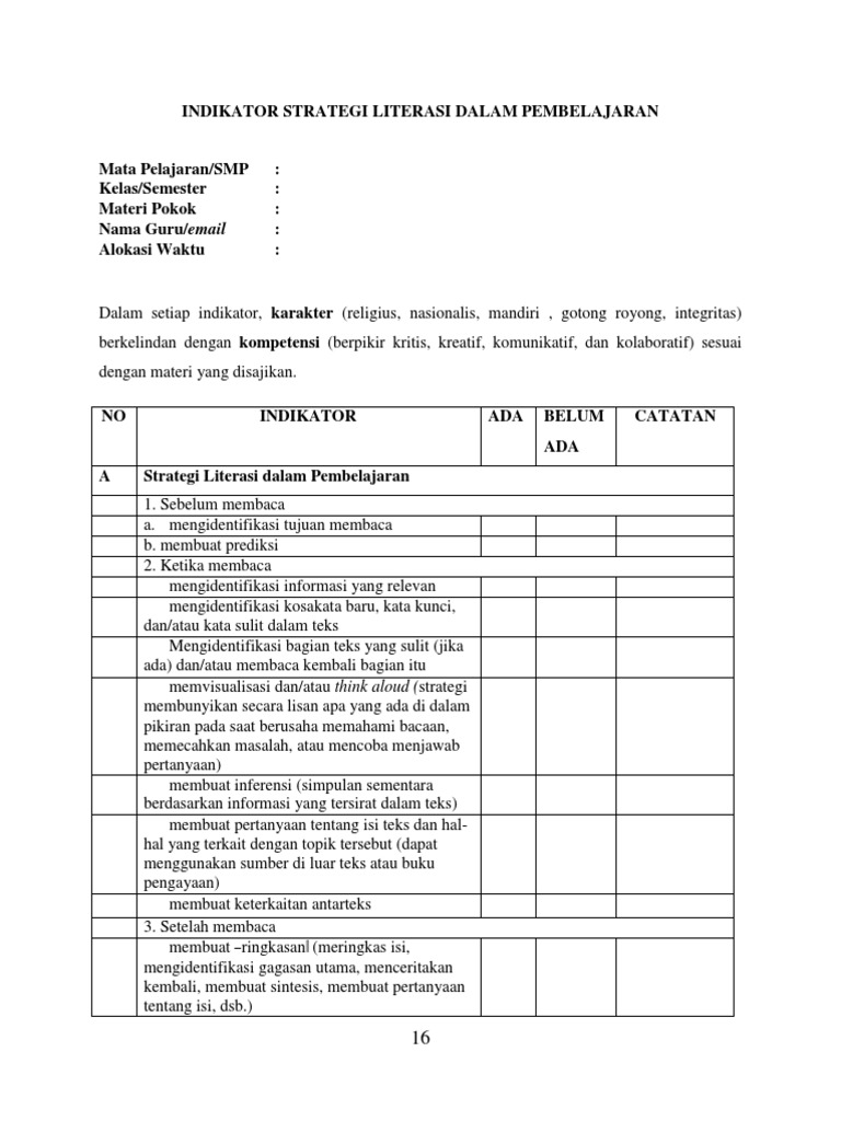 Lk 2 Indikator Literasi Dalam Pembelajaran