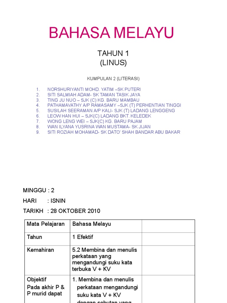Rph Ahad Doc Tingkatan Masa Mata Pelajaran Tajuk Objektif Aktiviti