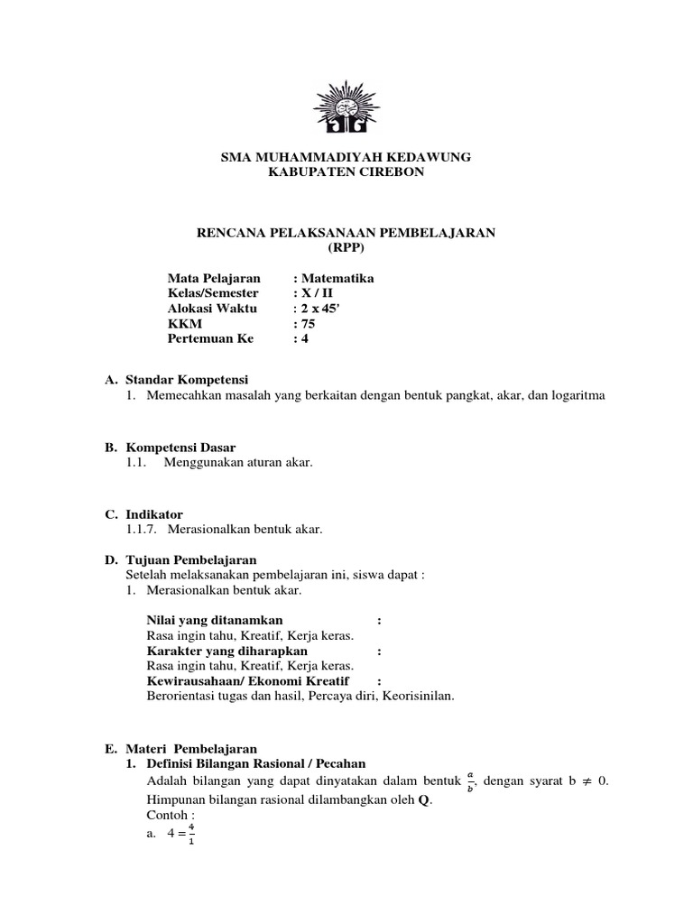Materi Matematika Sma Kelas 10 Bentuk Akar Deserta Contoh Soal