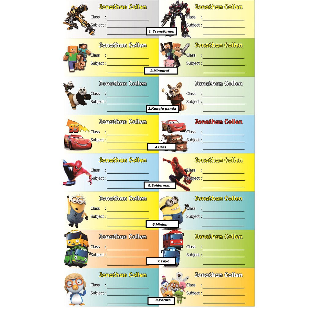 Stiker Label Buku Pelajaran Seri Anak Cowok