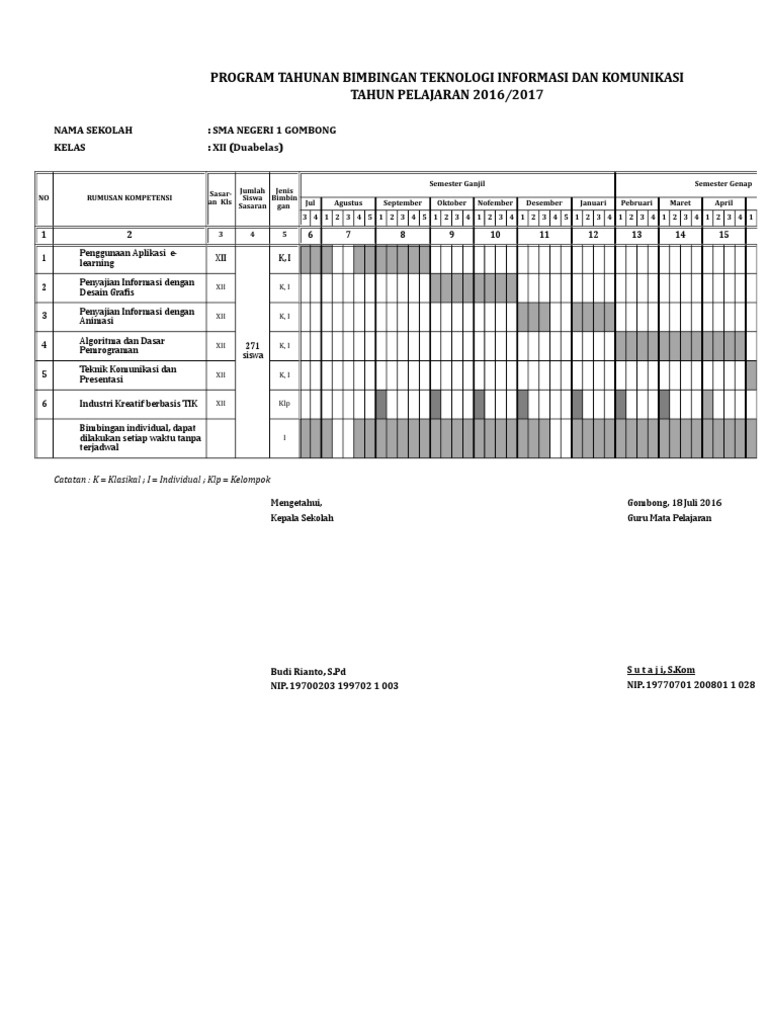 Promes Xlsx Program Semester Bimbingan Tik Semester Genap Tahun