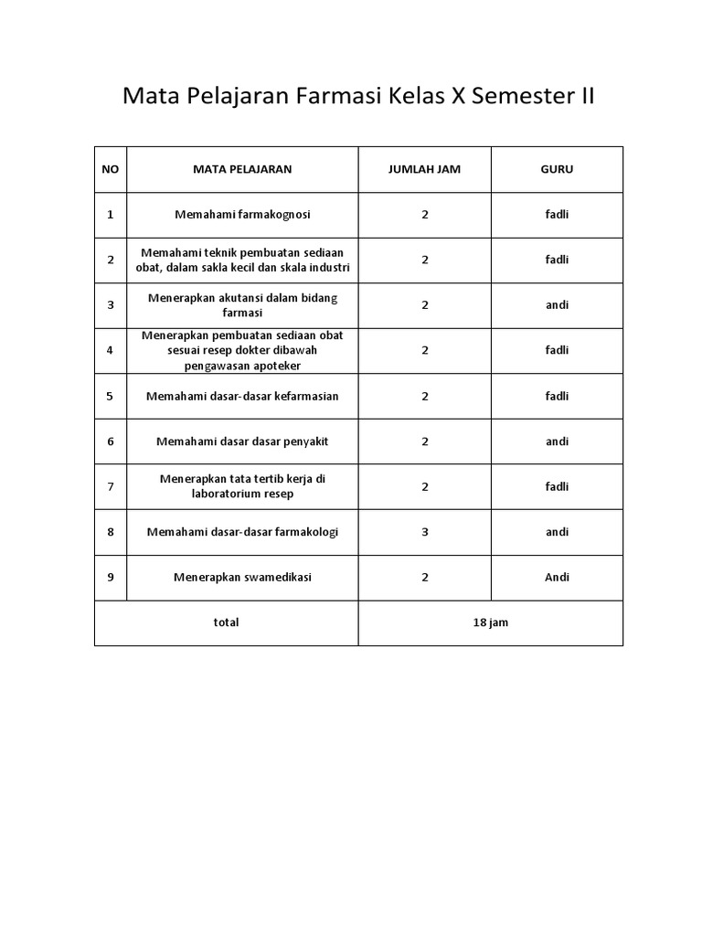 Mata Pelajaran Farmasi Kelas X Semester Ii