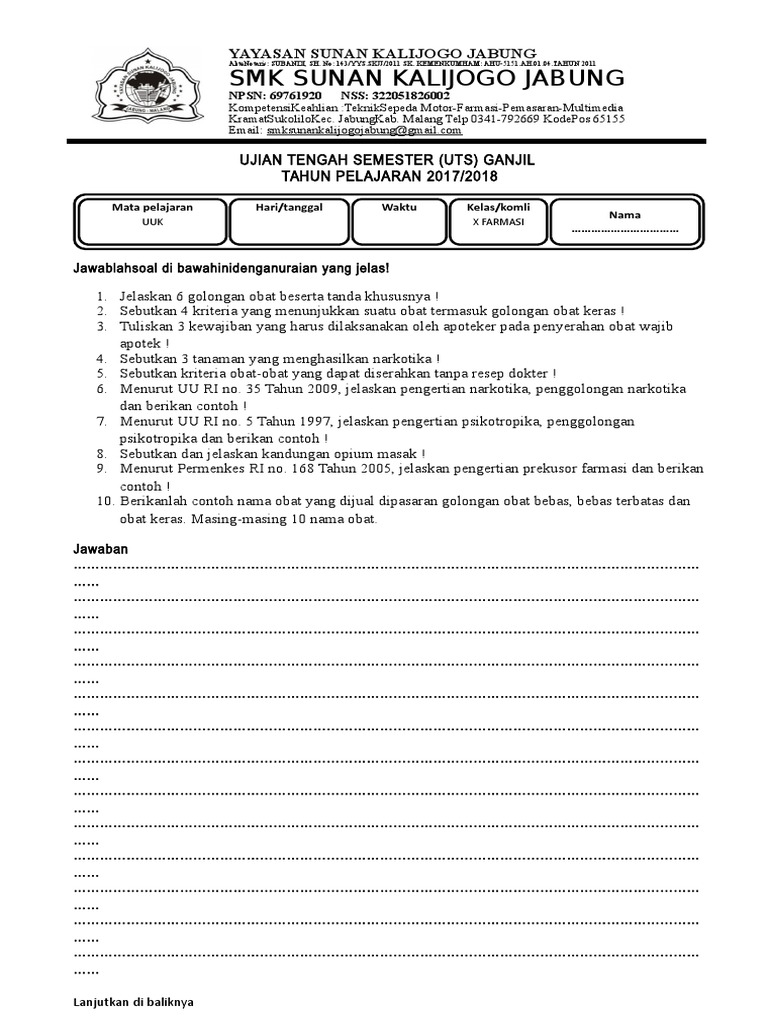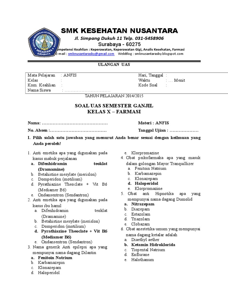 Kisi Kisi Un Teori Kejuruan Farmasi K13 Pdf Kisi Kisi Ujian