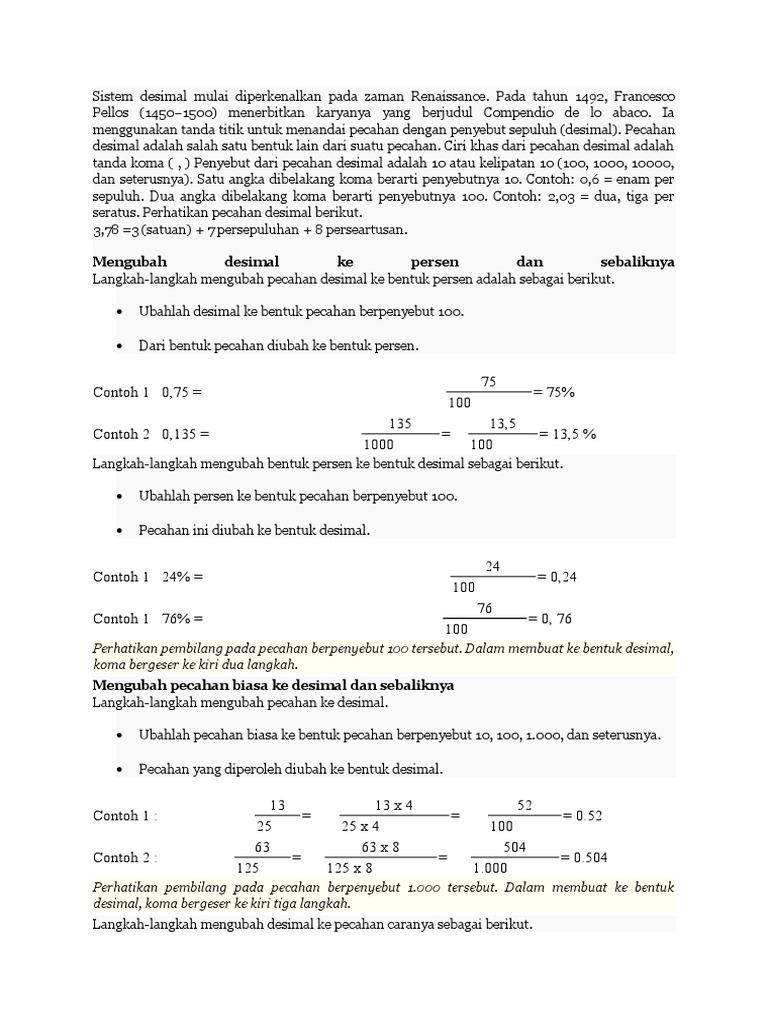 Cara Mengubah Pecahan Ke Desimal Dan Sebaliknya