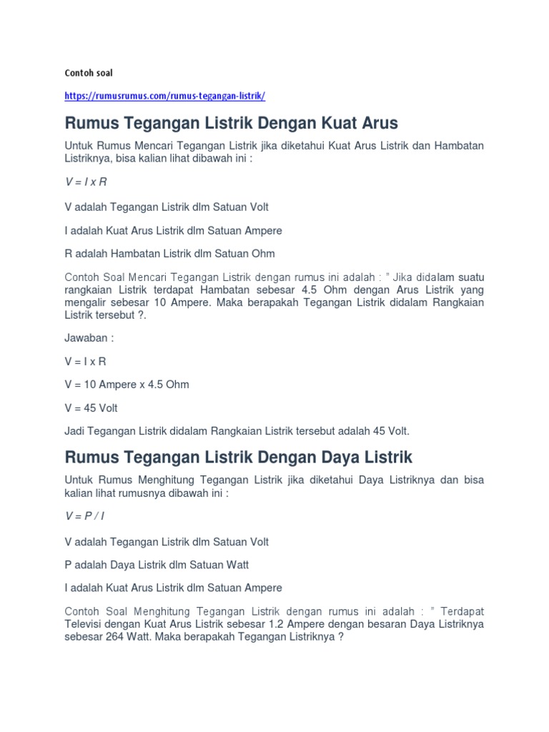 Rumus Daya Listrik Fisika Dan Contoh Soalnya