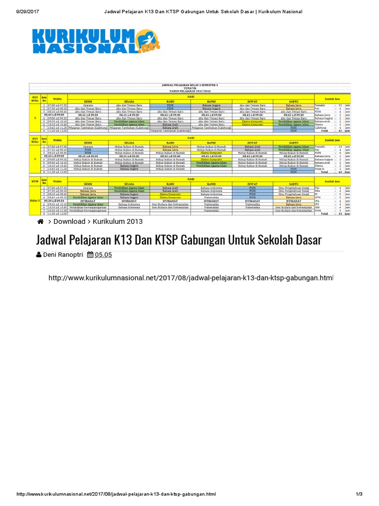 Jadwal Pelajaran K13 Dan Ktsp Gabungan Untuk Sekolah Dasar