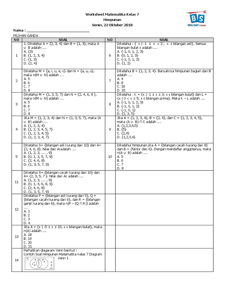Doc Paket 1 Contoh Soal Dan Pembahasan Matematika Smp Mts Agnesi