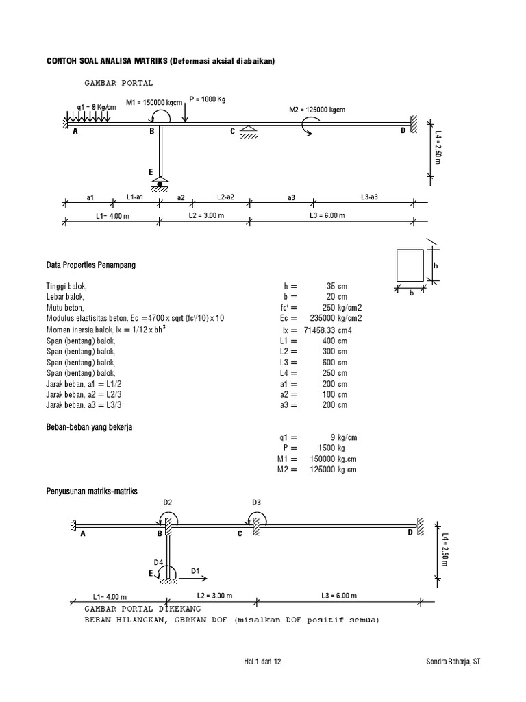 Contoh Soal Analisa Matriks Portal Kekakuan Biasa