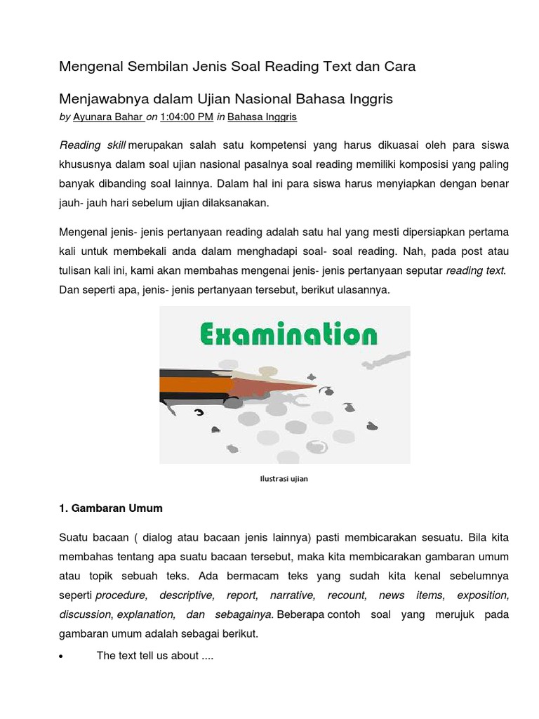 Mengenal Sembilan Jenis Soal Reading Text Dan Cara