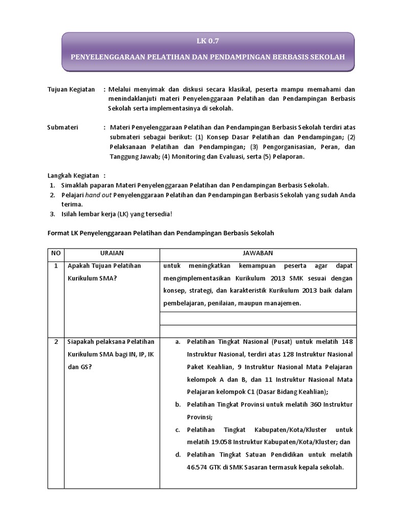 Lk 0 7 Penyelenggaraan Pelatihan Dan Pendampingan Berbasis Sekolah