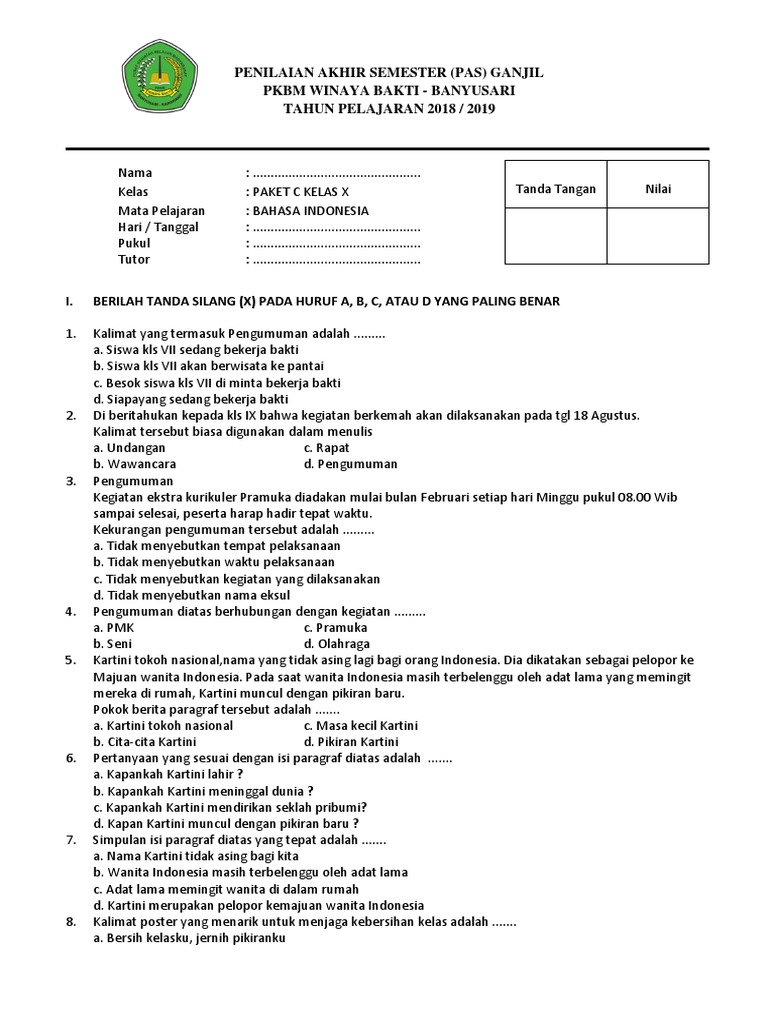 Soal Latihan Un Unbk Usbn Program Paket C Mata Pelajaran Bahasa