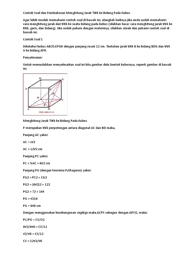 Contoh Soal Dan Pembahasan Menghitung Jarak Titik Ke Bidang Pada Kubus