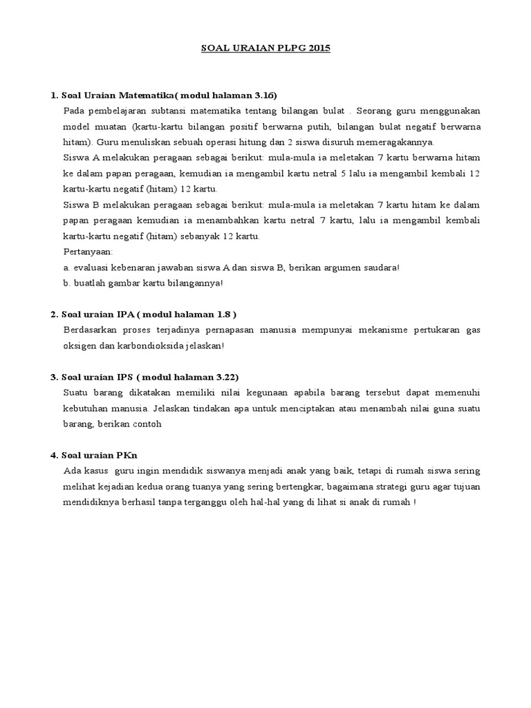 Contoh Soal Uraian Ppg Sd Mi Jalurppg Id