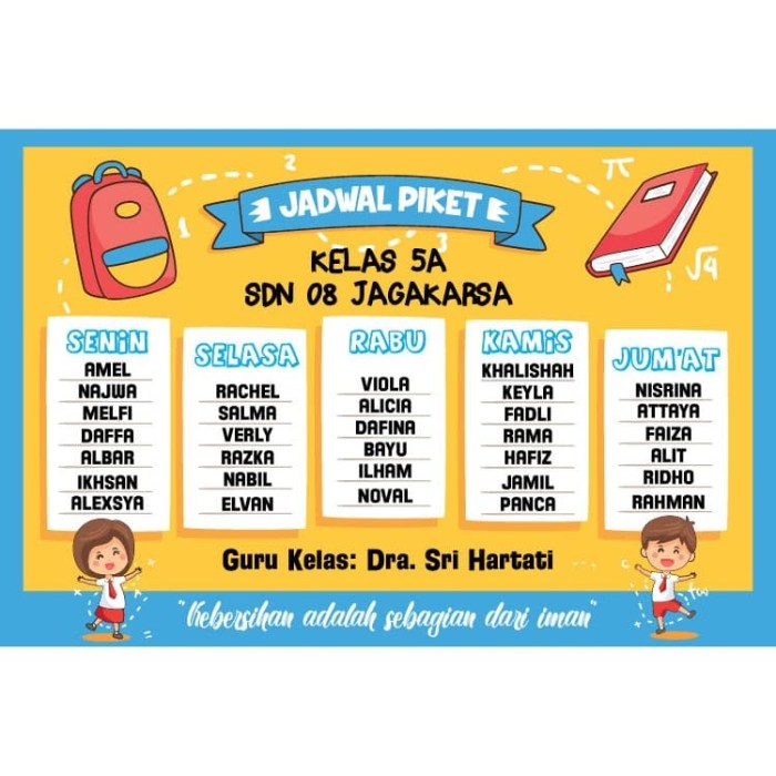 Jual Cetak Jadwal Mata Pelajaran Jadwal Piket Sekolah Dki Jakarta Saung Kreatif Tokopedia