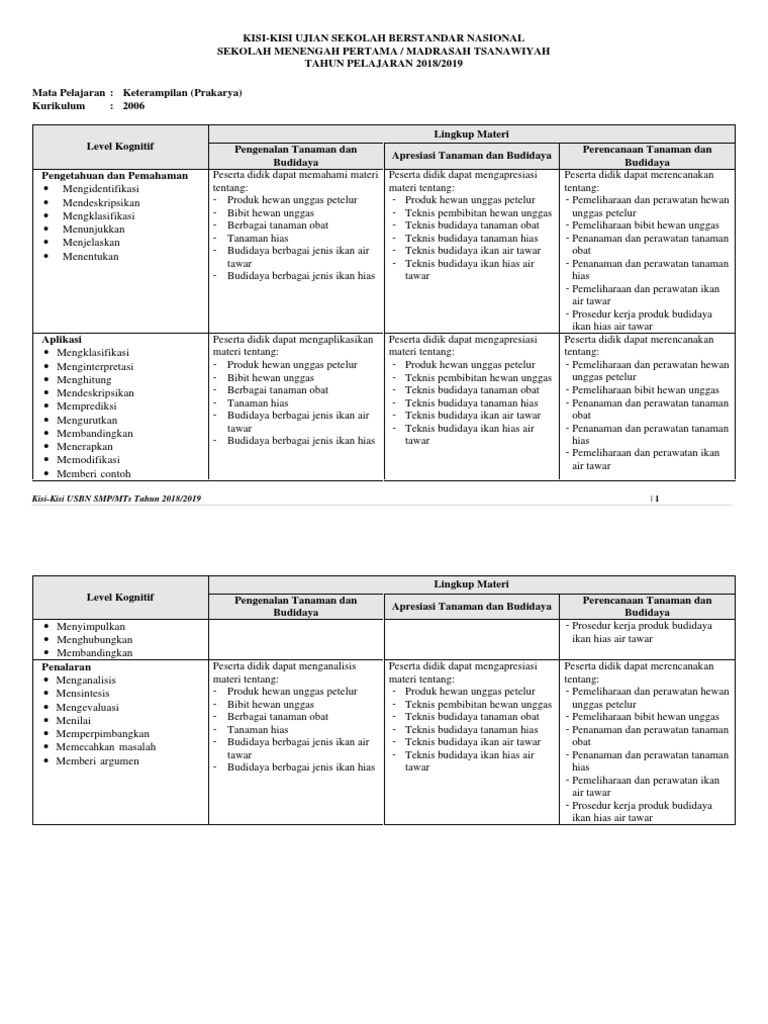 Kisi Kisi Usbn Smp Keterampilan Prakarya K2006 Pdf