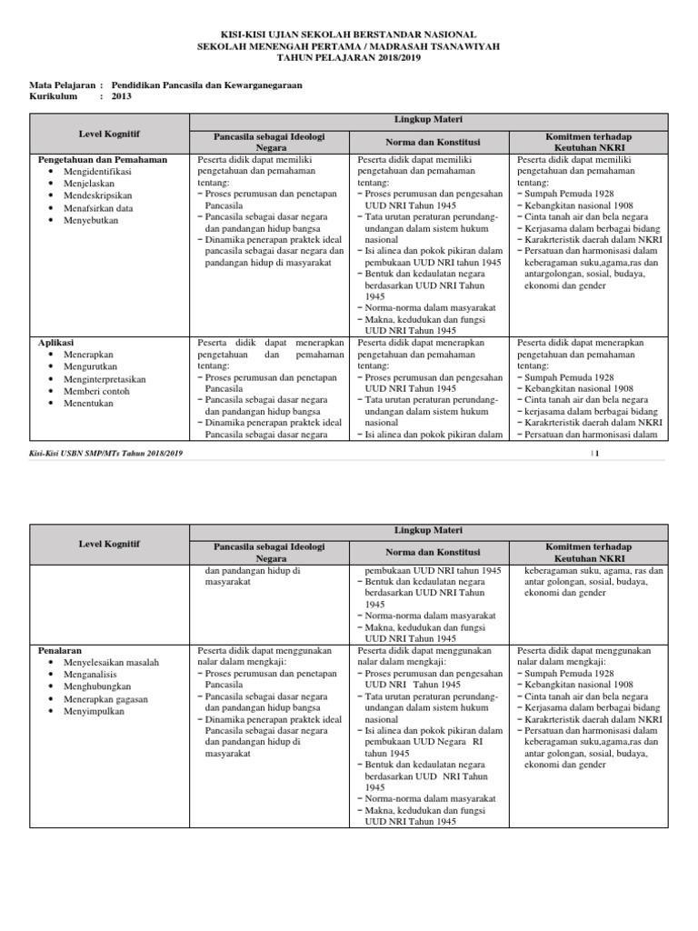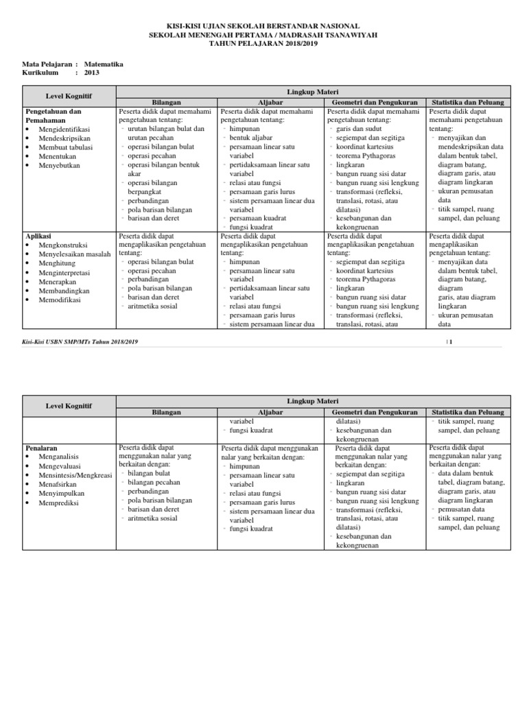 Download Kisi Kisi Ujian Nasional Dan Usbn Smp Mts Tahun Pelajaran