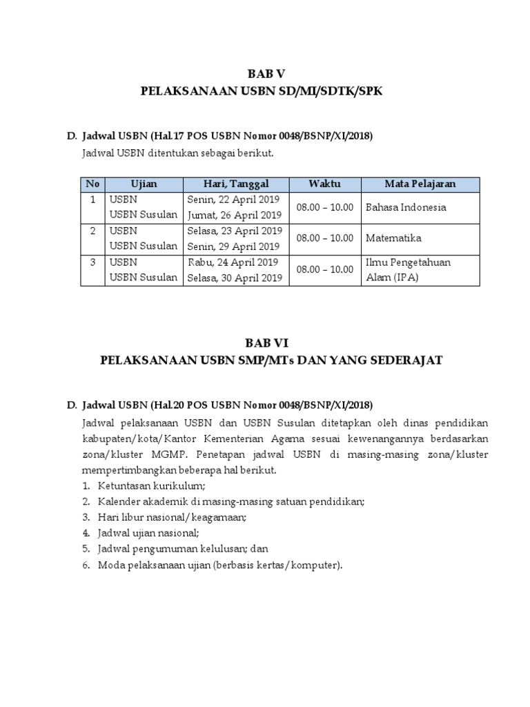 Jadwal Pelaksanaan Usbn 2019 Pdf