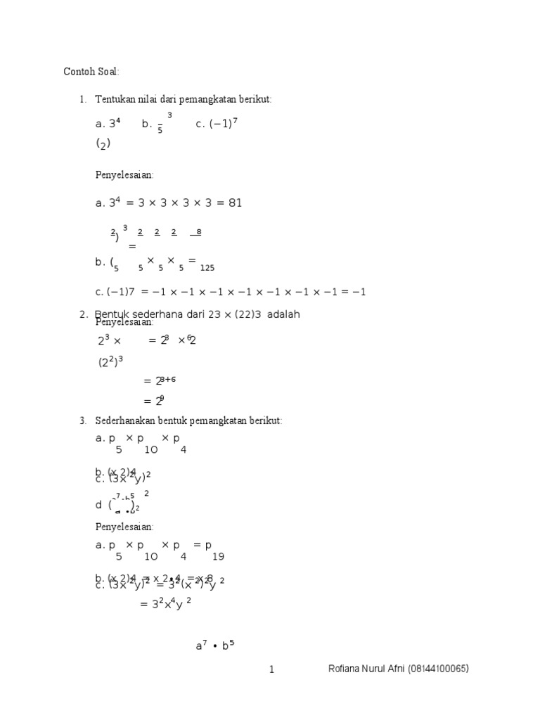 Ruang Belajar Siswa Kelas 1 Contoh Soal Bilangan Berpangkat