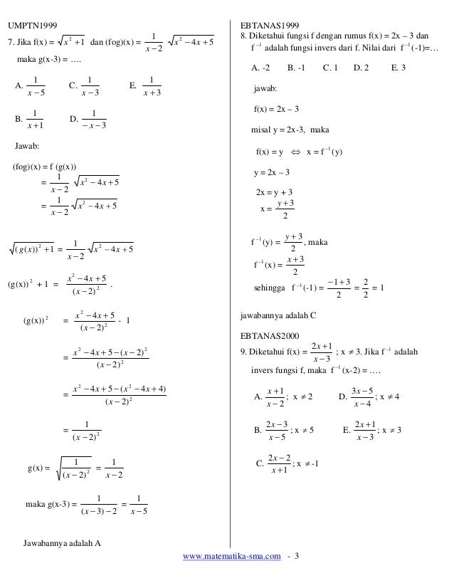 Soal Dan Pembahasan Matematika Fungsi Komposisi Dan Fungsi Invers 6
