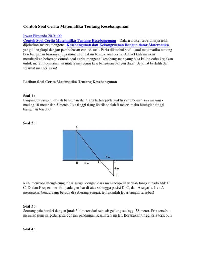 Contoh Soal Cerita Matematika Tentang Kesebangunan Materi
