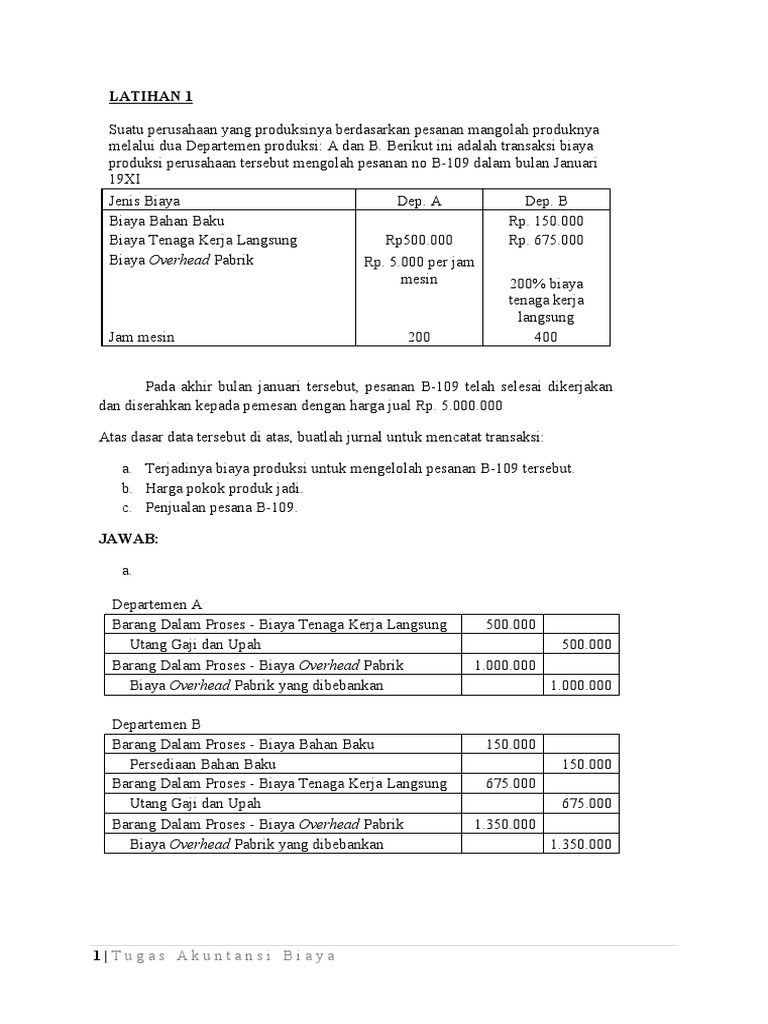 Soal Akuntansi Biaya Untuk 2 Departemen Fathul Jannah Academia Edu