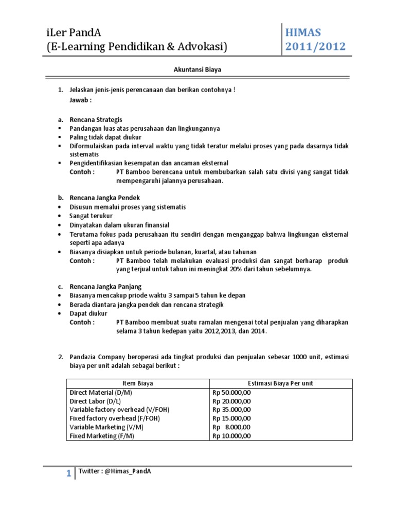 Contoh Soal Modul Akuntansi Biaya Docx Contoh Soal Jawaban Modul