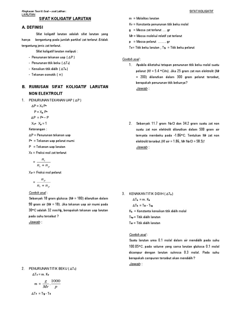 Contoh Soal Kolegatif Larutan Dan Pembahasannya Myrightspot Com