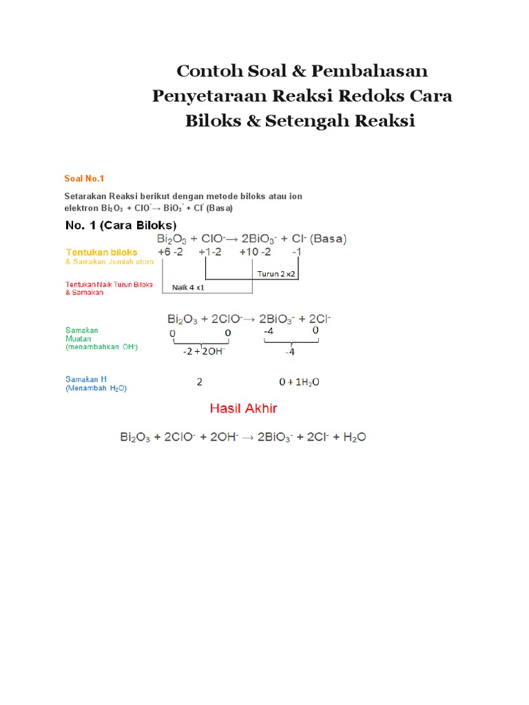 Contoh Soal Penyetaraan Reaksi Redoks Cara Pbo Suasana Basa