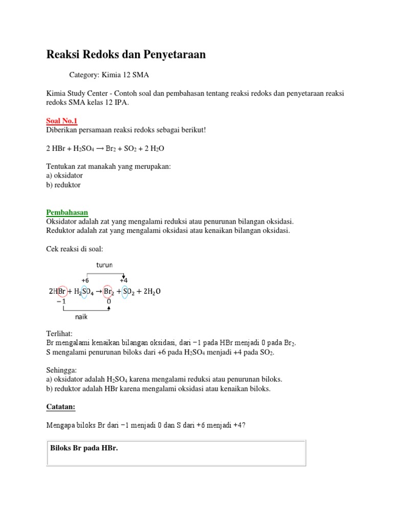 Contoh Reaksi Redoks Kimia Sbmptn Un Sma
