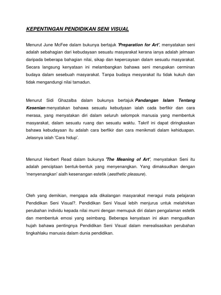 Kepentingan Pendidikan Seni Visual Minggu 4 En Nik Baru