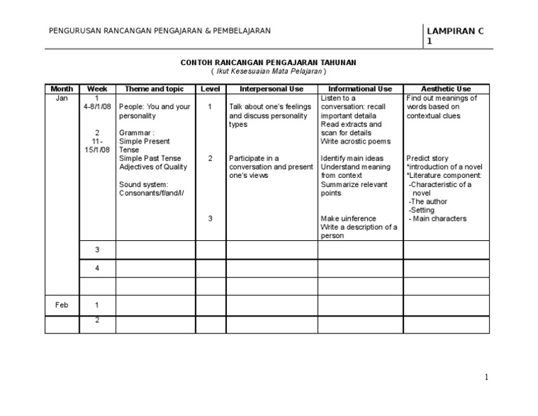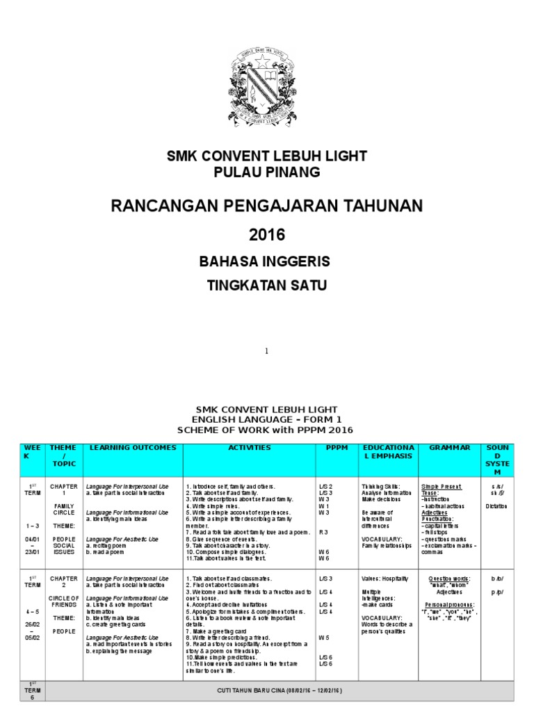 Huraian Sukatan Pelajaran Bahasa Inggeris Tingkatan 1 By Smk Lembah