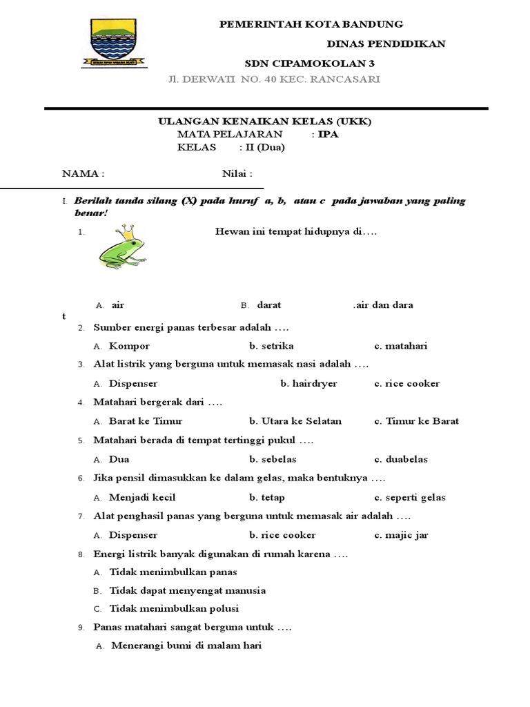 Kumpulan Materi Soal Ulangan Mata Pelajaran Ipa Untuk Kelas 2 Sd Dan