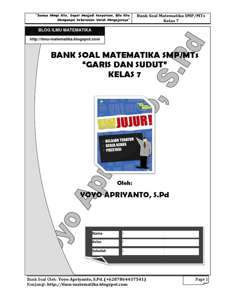 Kisi Kisi Soal Dan Jawaban Matematika Smp Kelas 7 Semester