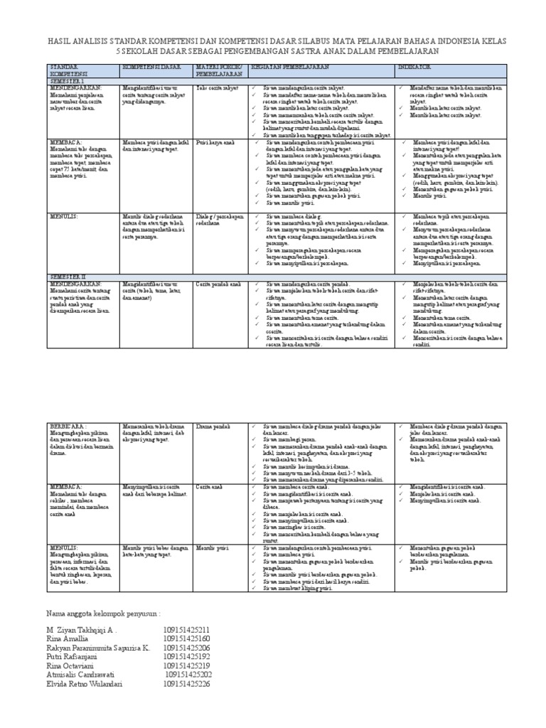 Hasil Analisis Standar Kompetensi Dan Kompetensi Dasar Silabus Mata