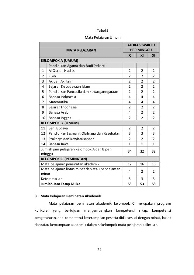 Struktur Kurikulum 2013 Madrasah Aliyah Ma Terbaru Harian Madrasah