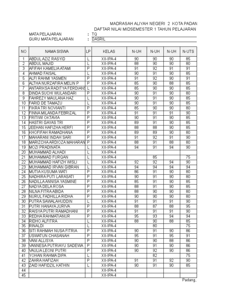 Laporan Hasil Ulangan Kenaikan Kelas Ukk Madrasah Aliyah Negeri 1