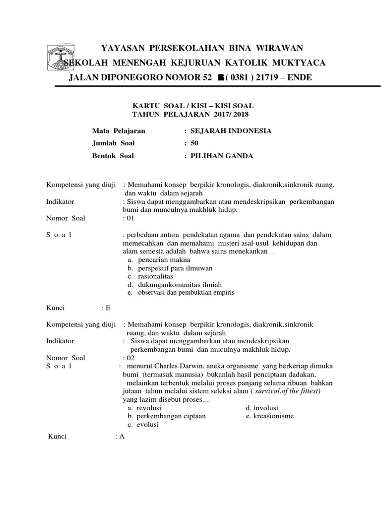Contoh Soal Sejarah Pilihan Ganda Dan Jawabannya Kelas X Semester 2
