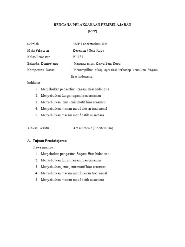 Rpp Prakarya Kerajinan Kelas Ix Sem 1 Pdf Document