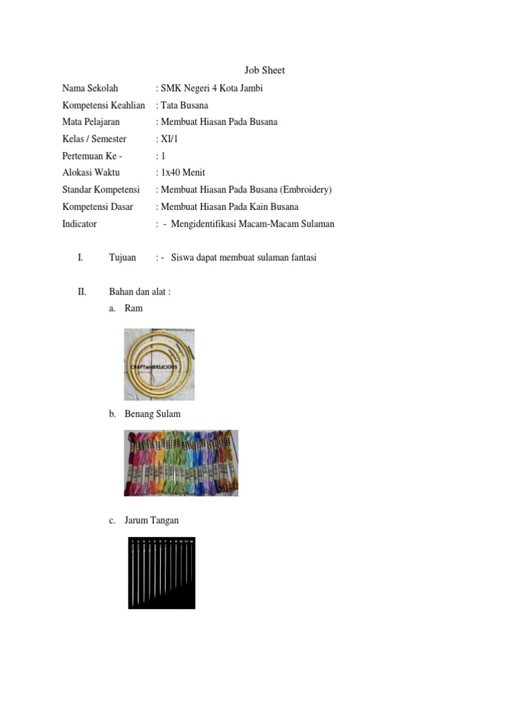 Pengembangan Modul Pembuatan Sulaman Aplikasi Pada Mata Pelajaran
