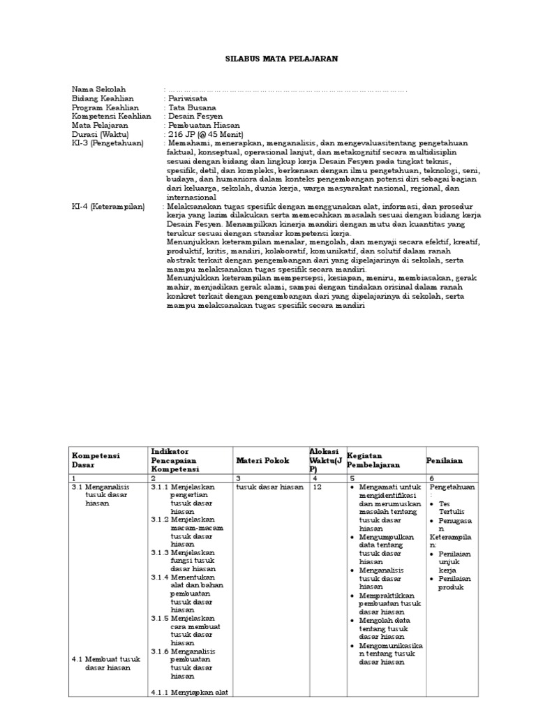 8 Format Silabus Docx S I La B U S Satuan Pendidikan Smk Sore