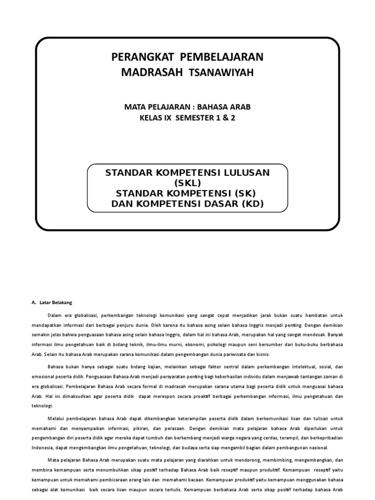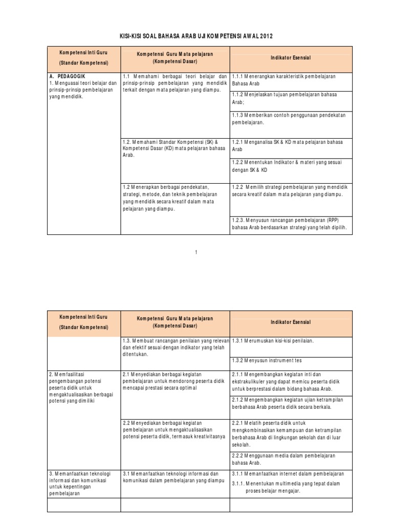 Kisi Kisi Materi Plpg Mata Pelajaran Bahasa Arab Silabus