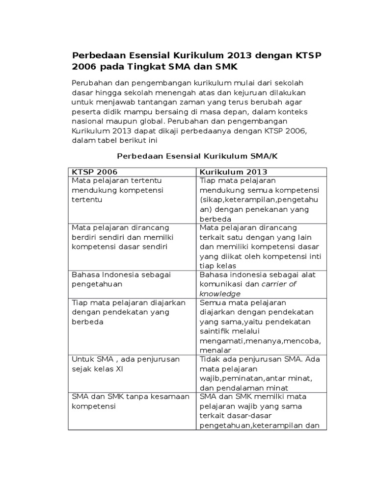 Perbedaan Esensial Kurikulum 2013 Dengan Ktsp 2006 Pada