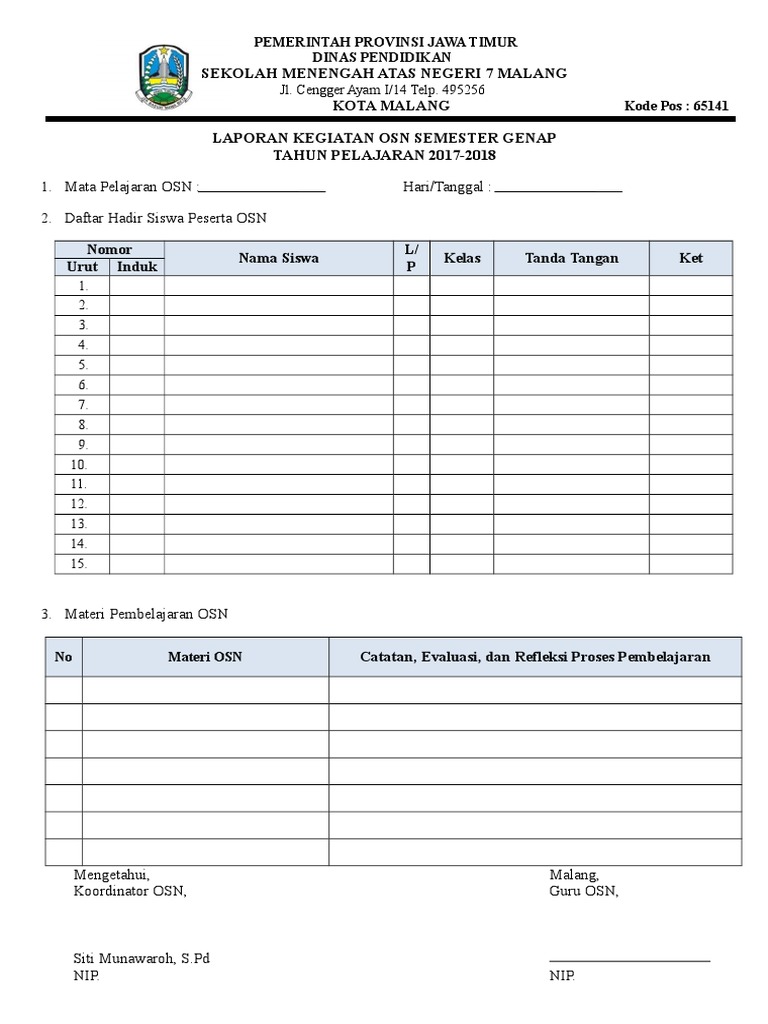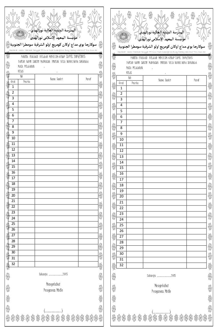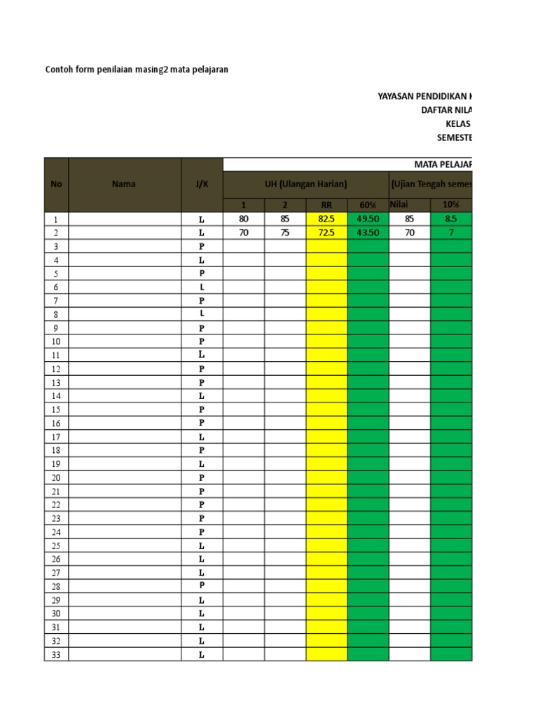 Contoh Format Absensi Dan Daftar Nilai Guru Mapel Educationn